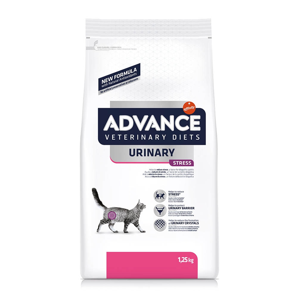 Wenn Ihre Katze gestresst ist, neigt sie zum uirnieren an unerwünschten Stellen oder zur idiopathischen Blasenentzündung. ADVANCE Veterinary Diets Urinary Stress wird mit Melisse, Fisch-Peptiden und Tryptophan hergestellt. Die Bestandteile können dazu beitragen, den Stress zu reduzieren. ADVANCE Veterinary Diets Urinary Stress kann bei regelmäßiger Fütterung unterstützen die Harnsteinbildung vorzubeugen. Das Trockenfutter enthält einen angepassten Magnesiumanteil und kann den Erhalt eines optimalen pH-Werts im Harn fördern.