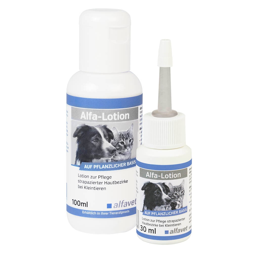 Alfa-Lotion enthält pflanzliche Inhaltsstoffe, die wunde und strapazierte Hautbezirke pflegen und vor schädlichen Einflüssen schützen. Sie zieht schnell und ohne zu fetten ein.