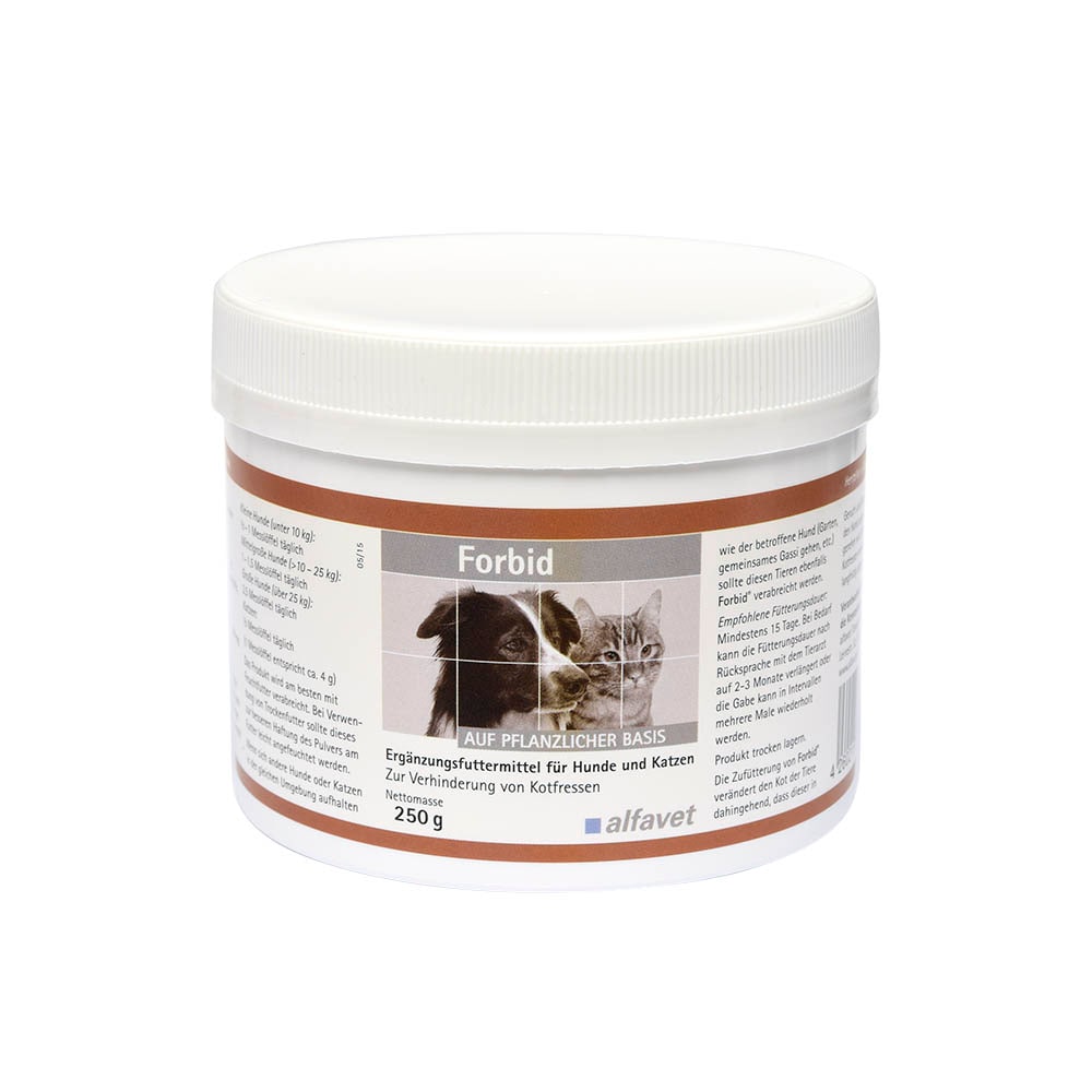 Die Zufütterung von Forbid verändert den Kot der Tiere dahingehend, dass dieser in Geruch und Geschmack für den Hund ausgesprochen unangenehm wird. Dadurch kann das Kotfressen verhindert und auch langfristig abgewöhnt werden.