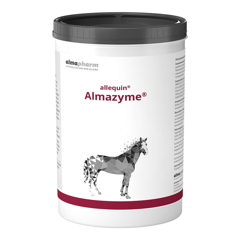 allequin® Almazyme® enthält leicht fermentierbare Faserstoffe, hochwertige Proteinquellen sowie hydrothermal aufgeschlossenen Hafer zur Verbesserung der Dünndarmverdaulichkeit. Fruchtkonzentrate und ein Getreidefermentationsprodukt mit natürlichen Restenzymaktivitäten können den optimalen Aufschluss typischer Pferdefuttermittel unterstützen. Vitamine des B-Komplexes in hoher Konzentration
