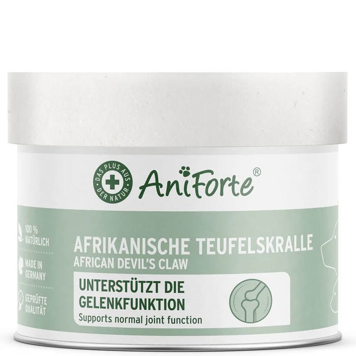 AniForte® Afrikanische Teufelskralle beinhaltet gemahlene Teufelskrallenwurzel und kann den gesamten Bewegungsapparat sowie die normale Gelenkfunktion Deines Lieblings unterstützen.