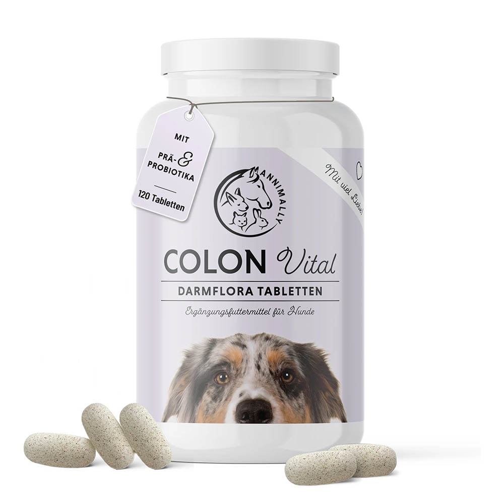 Die Colon Vital Tabletten von Annimally sind eine wertvolle Unterstützung für die Darmgesundheit des Hundes. Sie enthalten sorgfältig abgestimmte Präbiotika und Probiotika mit lebendigen Mikroorganismen und "guten Bakterien", die die Darmflora positiv beeinflussen. Dank ihrer hohen Bioverfügbarkeit können die Colon Vital Tabletten optimal vom Körper des Hundes aufgenommen und verwertet werden. So kann sich der Hund rundum wohlfühlen!