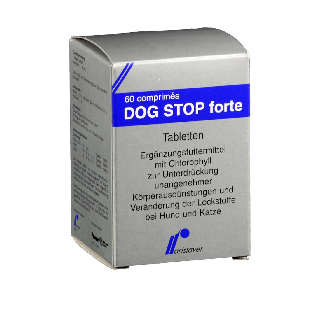 Hund ab 20 kg: 4-6 Tabletten täglichDie Tabletten werden zur optimalen Geruchsunterdrückung am besten morgens eingesetzt, bei läufigen Hündinnen sollte die morgendliche Gabe möglichst 1 Stunde vor dem Ausgang erfolgen. Die Geruchswirkung hält bis zu 1 Tag nach der letzten Gabe an. Die Dosierung kann ohne weiteres erhöht werden, wenn sich die gewünschte Wirkung nach 1-2 Tagen nicht eingestelt hat. DOG STOP forte kann über einen längeren Zeitraum verabreicht werden.