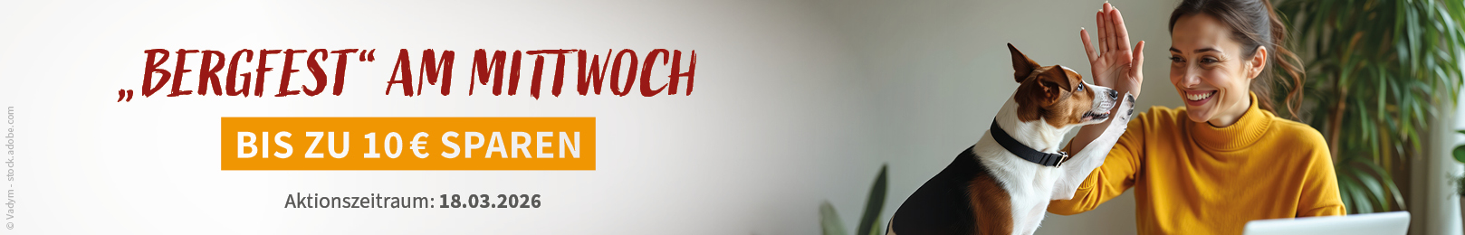 Wir schenken Ihnen am 18.03.2026 bis zu 10 € auf Ihren gesamten Einkauf! Nutzen Sie unser "Bergfest" am Mittwoch und shoppen Sie eine Runde auf Tierarzt24.de.