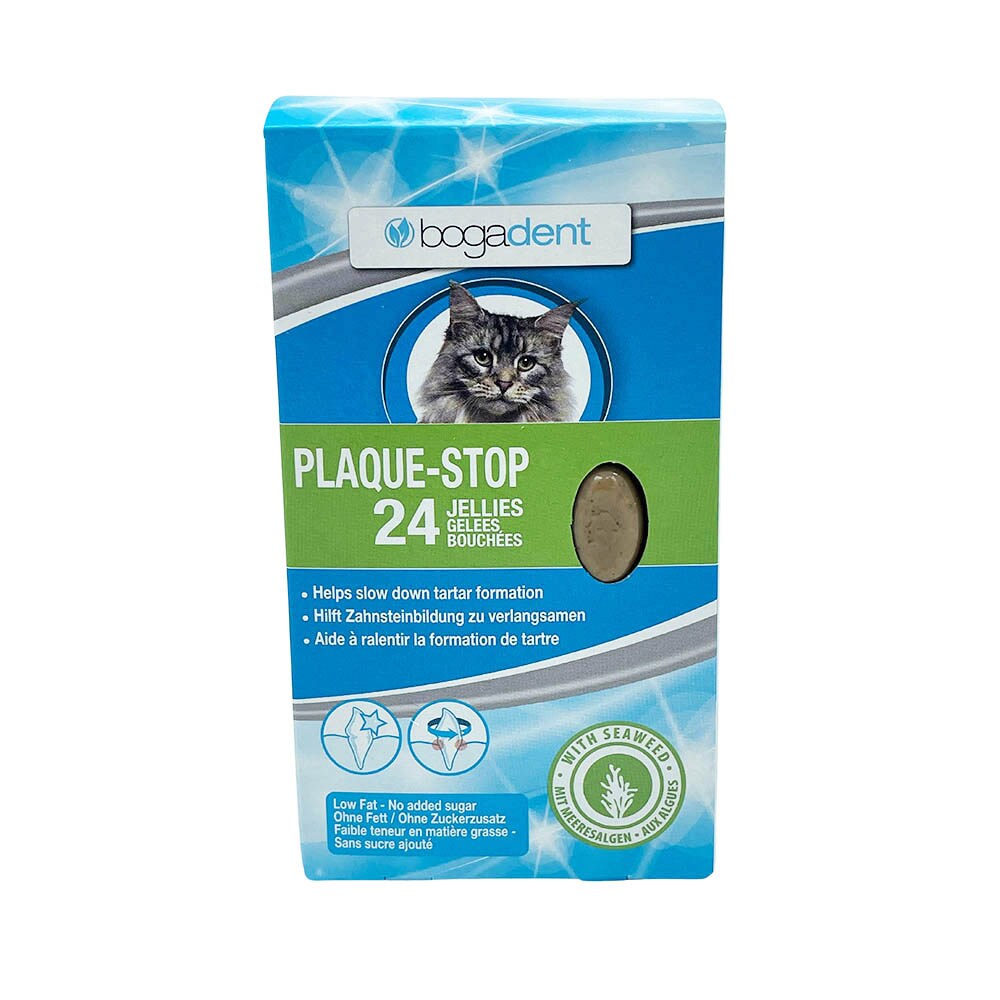bogadent Plaque-Stop Jellies sind speziell entwickelt, um die Bildung von Zahnstein bei Katzen zu verzögern. Diese schmackhaften Jellies enthalten Meeresalgen, die für ihre positive Unterstützung auf die Mundhygiene von Katzen bekannt sind. Sie sind frei von zugesetztem Zucker und daher eine gesunde Wahl für jede Katze.