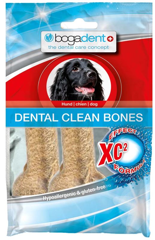 Die leckeren, hypoallergenen und glutenfreien bogadent®DENTAL CLEAN BONES sind die ideale Lösung, Zahnpflege und Kauvergnügen zu verbinden. Die innovative XC2-Effect-Formula, bestehend aus einem besonderen Fruchtextrakt (CB90MX) und aus speziellen Mineralstoffen, kann vor Plaque- und Zahnsteinbildung schützen. Die harte Konsistenz der DENTAL CLEAN BONES unterstützt zudem den mechanischen Abrieb von Plaque und Zahnstein und stärkt gleichzeitig die Kaumuskulatur.