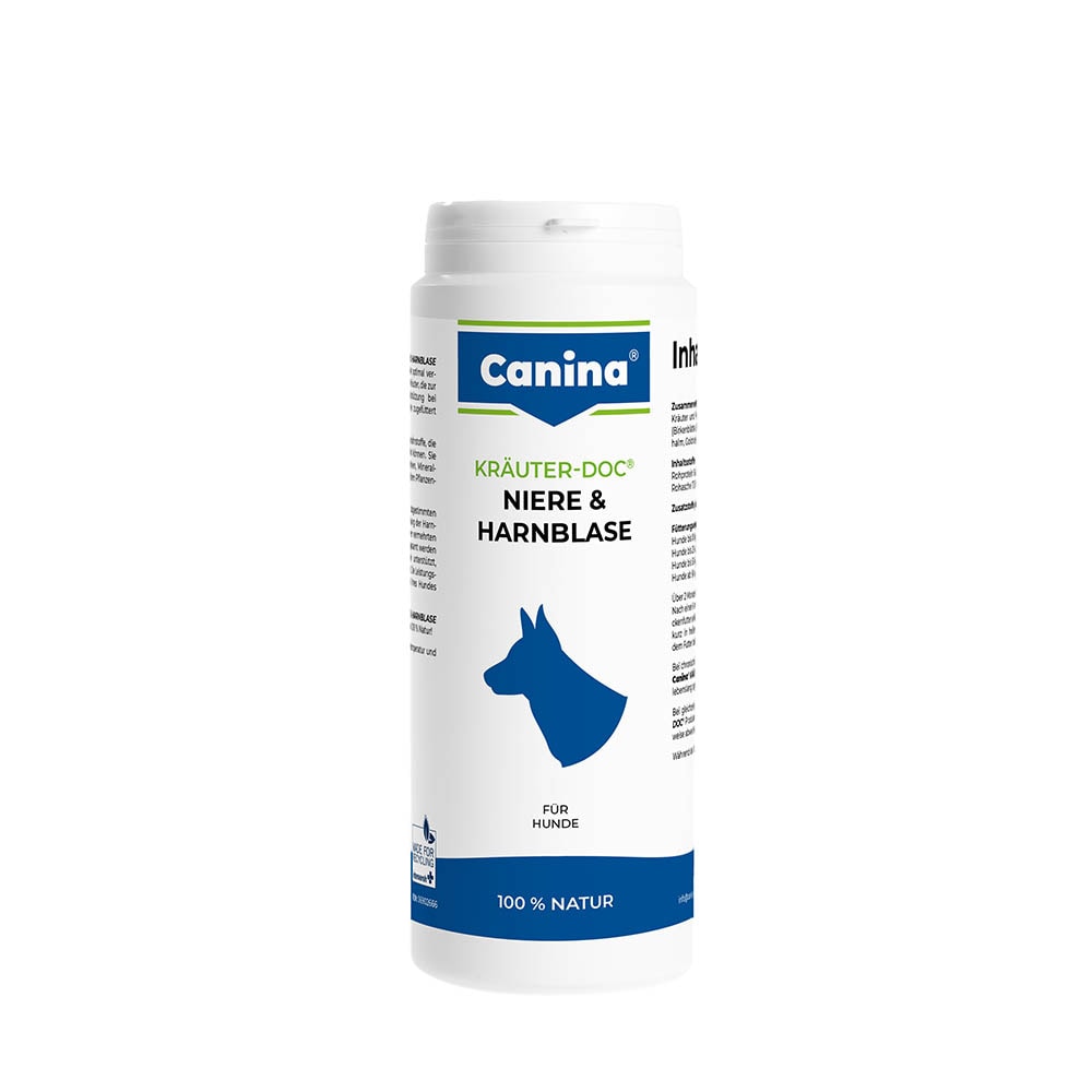 Canina Kräuter-Doc® Niere & Harnblase ist eine fein vermahlene und daher optimal verwertbare Mischung ausgesuchter Kräuter, die zur ernährungsphysiologischer Unterstützung bei Nieren- und Harnblasenproblemen zugefüttert werden kann. Die Kräuter liefern wichtige Phytonährstoffe, die in der täglichen Ernährung fehlen können. Sie versorgen den Körper mit Vitaminen, Mineralstoffen, Aminosäuren und sekundären Pflanzenstoffen. Durch die speziell aufeinander abgestimmten Kräuter kann sich die Durchströmung der Harnwege erhöhen, so dass es zu einer vermehrten Wasserausscheidung kommt. Insgesamt werden Nieren- und Harnblasenfunktion unterstützt, Reizungen der Harnwege gelindert. Die enthaltene Goldrute fördert die Durchspülung der harnleitenden Wege. Die Leistungsfähigkeit und das Wohlbefinden Ihres Hundes wird gefördert.