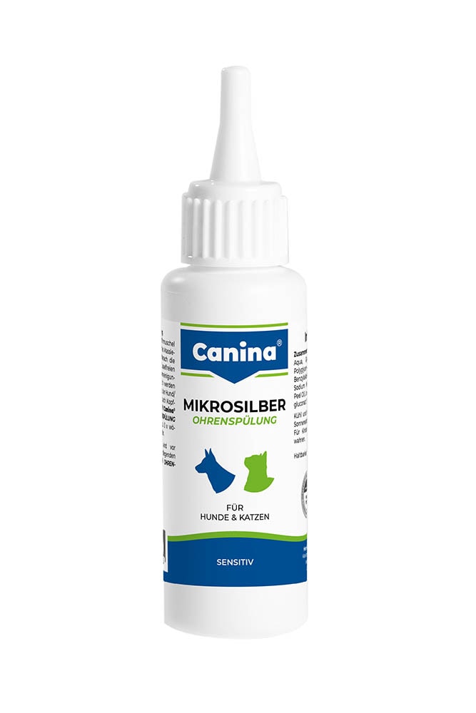 Canina® Mikrosilber Ohrenspülung reinigt die empfindlichen Ohren sanft und reizt die Ohrenschleimhaut nicht. Durch die besondere Zubereitung lösen sich fest sitzende Verunreinigungen auch in der Tiefe der Ohren, so dass der Hund/die Katze diese durch Kopfschütteln selbst heraus befördern kann.