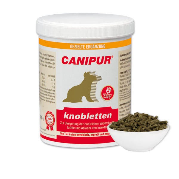 CANIPUR - knobletten - mit Knoblauch, Kräutern, Vitaminen, Mineralstoffen und Spurenelementen steigern die Widerstandskraft des Organismus, fördern die Verdauung, unterstützen die Entschlackung des Stoffwechsels und dienen dem Schutz vor Außenparasiten.