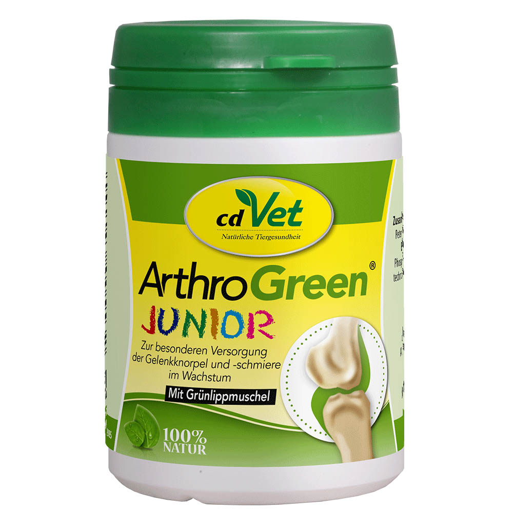 ArthroGreen Junior eignet sich ganz besonders für heranwachsende Tiere, um ernährungsbedingt den Gelenkstrukturen und dem Bewegungsapparat in dieser elementaren Zeit des Wachstums wichtige Bausteine zur Verfügung zu stellen.