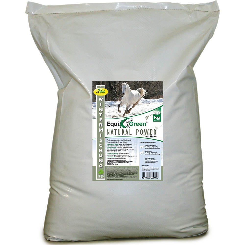 EquiGreen Natural Power Wintermischung enthält die hochwertigen und vielfach bewährten cdVet Futterzusätze: