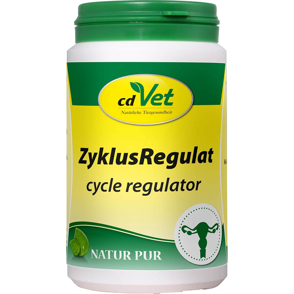cdVet ZyklusRegulat hat einen regulierenden Einfluss auf das hormonelle Geschehen und reguliert natürlich und schonend bei Problemen mit der Läufigkeit und immer wieder auftretenden Scheinträchtigkeiten. Durch seinen Einfluss auf das Prolaktin, dem Hormon, welches für die Milchbildung zuständig ist, kann es den Milchfluss reduzieren und Ruhe und Entspannung für die gestresste Hündin bringen. Die Kombination aus wertvollen Kräutern macht cdVet ZyklusRegulat zu einer natürlichen Unterstützung bei hormonellen Ungleichgewichten wie z.B. in der Läufigkeit und Scheinträchtigkeit.