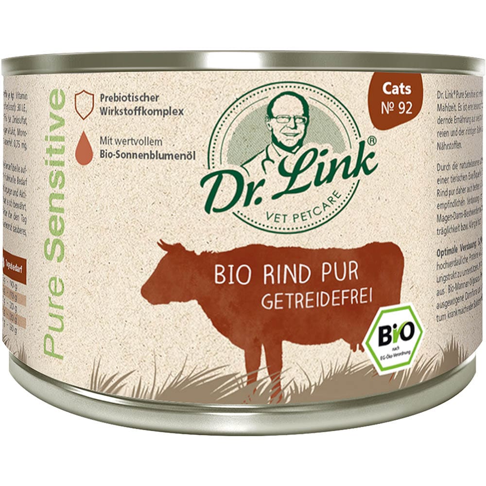 Durch die naturbelassenen Zutaten sowie die Nutzung nur einer tierischen Eiweißquelle ist Dr. Link® Pure Sensitive Bio Rind pur daher auch bestens für Katzen geeignet, die zu einer empfindlichen Verdauung neigen und deshalb anfällig für Magen-Darm-Beschwerden sind oder eine Futtermittelunverträglichkeit bzw. Allergie haben.Optimale Verdauung: