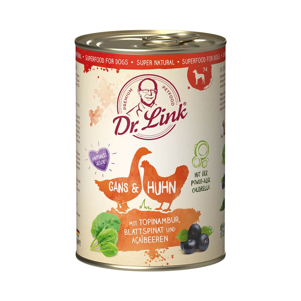 Starten Sie, indem Sie für zwei Tage ¼ des alten durch das neue Futter ersetzen. Ab dem 3. Tag ersetzen Sie die Hälfte und ab dem 6. Tag 75% des bisher gefütterten Produktes. Eine erfolgreiche Umstellung sollte in sieben bis neun Tagen abgeschlossen sein.Produktbewertungen für Dr. Link Super Natural Gans und Huhn Nassfutter für Hunde