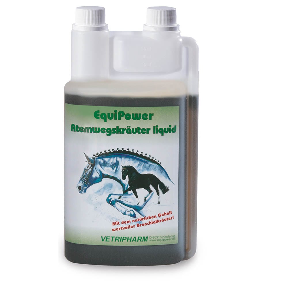EquiPower - Atemwegskräuter liquid setzt sich aus 12 speziell aufeinander abgestimmten Heilpflanzen zusammen. Die vielfältigen Wirkstoffe der Kräuter unterstützen und potenzieren sich in Ihrer harmonischen Wirkung auf die Atemwege. Atemwegskräuter liquid ist in seiner Zusammensetzung so gewählt, dass es speziell im Bereich der Atmungsorgane anregend, regulierend und kräftigend wirkt.