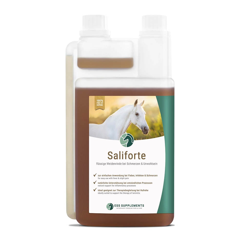 ESS Saliforte enthält Weidenrinde, die im Körper des Pferdes innerhalb kürzester Zeit zu Salicylsäure umgewandelt wird. Diese hat eine starke Ähnlichkeit mit der chemisch hergestellte Acetylsalicylsäure - in der Humanmedizin auch bekannt als "Aspirin".