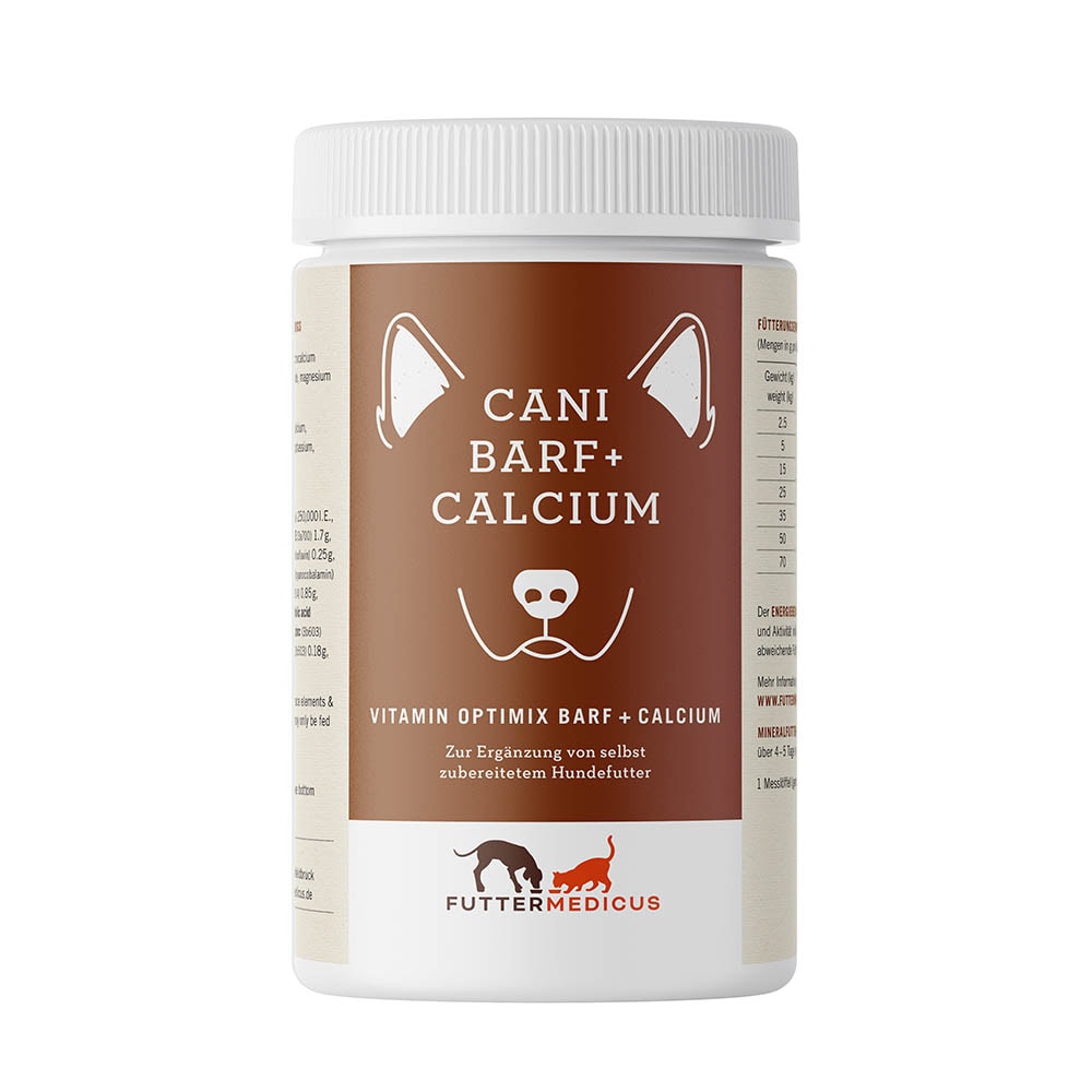 Das Vitamin Optimix Barf plus Calcium ist eine Nahrungsergänzung für Hund um die BARF-Ration mit den notwendigen Vitaminen und Mineralien zu versorgen. Das Mineralstoffpulver ist für den ausgewachsenen und gesunden Hund entwickelt. Knochen- und Innereinfütterung ist nicht notwendig.