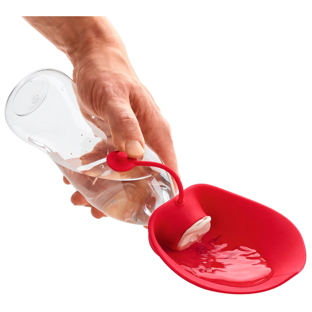 Das perfekte Reise-Gadget - Mit der Outdoor Trinkflasche mit Silikonnapf kann die Wasserversorgung auch ohne sperrigen Napf stattfinden. Die Trinkflasche lässt sich mit einem Karabiner ganz einfach an Gürtelschlaufen, Taschen oder am Rucksack befestigen. Kommt Durst auf, kann die Schüttvorrichtung aus lebensmittelgeeignetem Silikon einfach ausgeklappt und als Napf genutzt werden. Die Schüttvorrichtung kann von der Outdoor-Trinkflasche LIST abgenommen und auf andere handelsübliche Flaschen aufgesetzt werden.