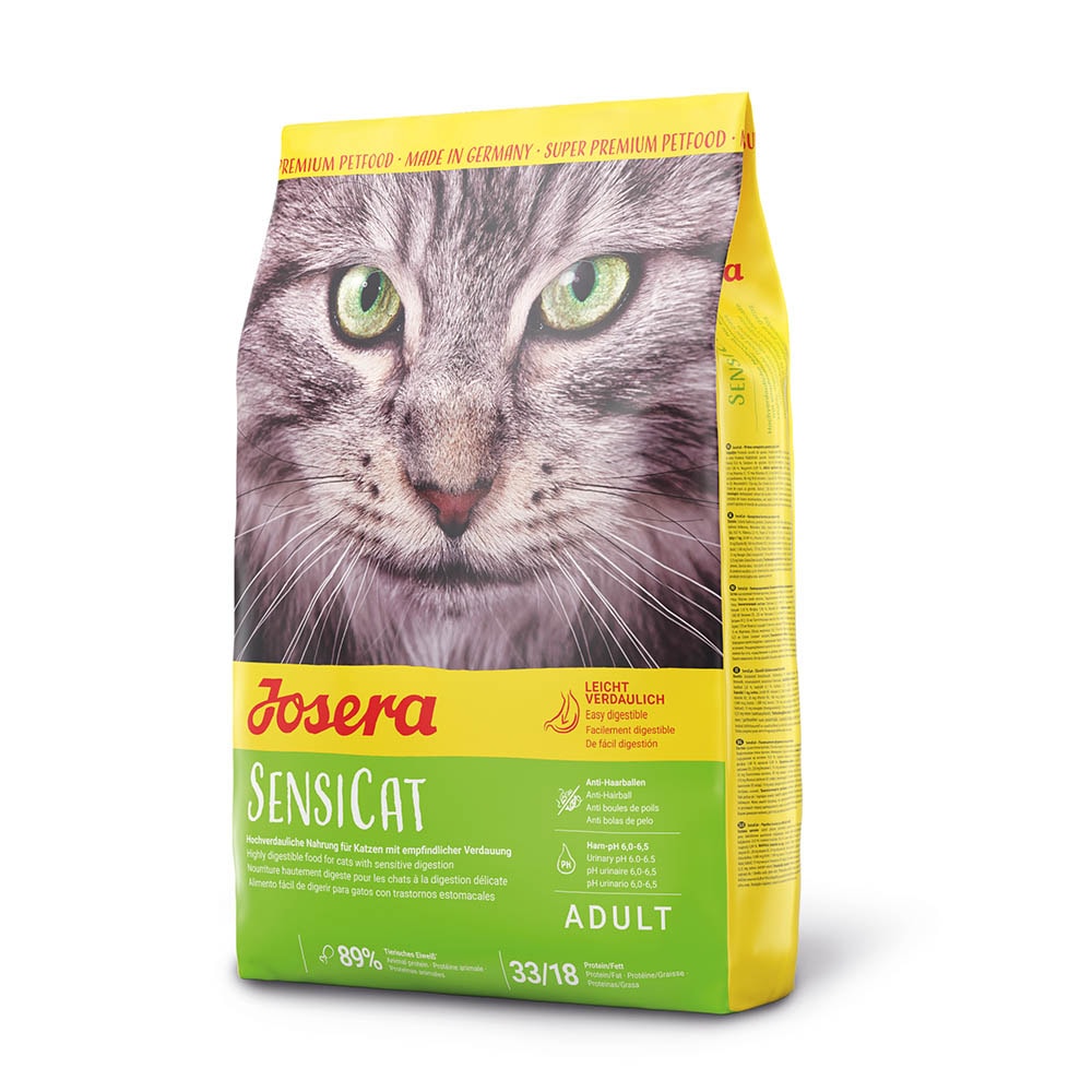 Grummeln und Knurren im Katzenmagen? Wir haben ein Menü, bei dem das der Vergangenheit angehören wird: Unser Josera SensiCat beinhaltet nur ausgewählte, leicht verdauliche Zutaten und ist somit besonders verträglich. So kommen auch ernährungssensible Samtpfoten in den Genuss eines echten Gourmet-Menüs!