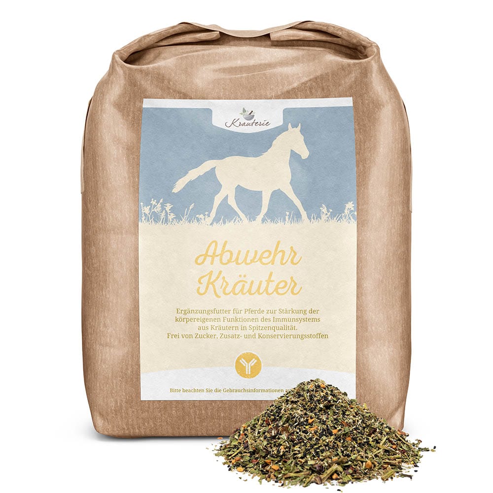 Die Krauterie Abwehr Kräuter sind ein Zusatzfutter für das Immunsystem des Pferdes. Sie stärken die körpereigenen Abwehrkräfte und die natürliche Immunfunktion – ganzheitlich und vielseitig.