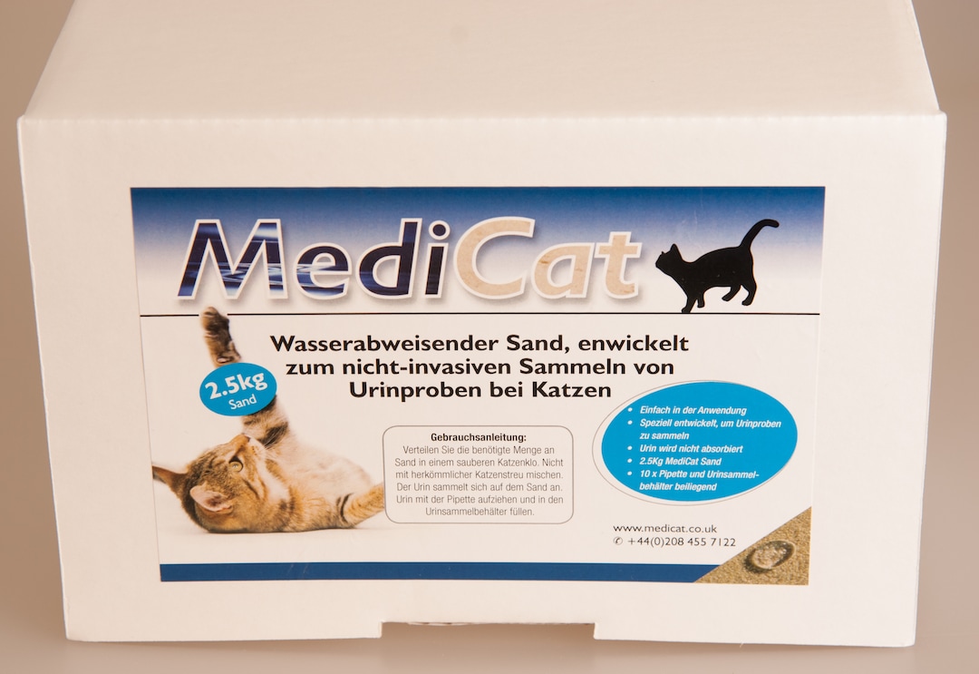 Hydrophober Sand zur Gewinnung von Urinproben direkt aus der Katzentoilette.