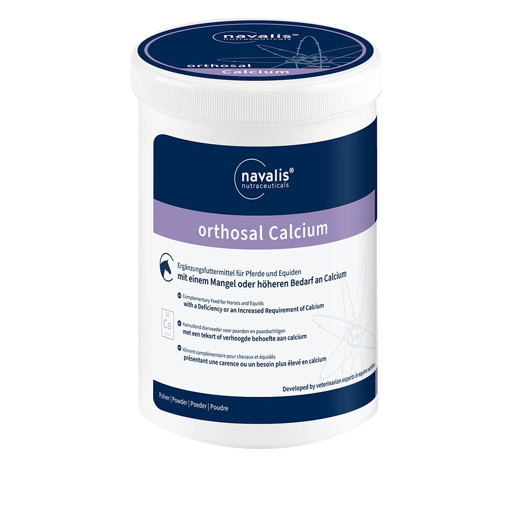 orthosal Calcium – Wichtiger Baustein für Knochen, Muskeln und Nerven. Calcium ist essenziell für die Festigkeit von Knochen und Zähnen und trägt maßgeblich zur Belastbarkeit des Skeletts bei. Besonders in Phasen mit erhöhtem Bedarf, wie Wachstum, Trächtigkeit, Laktation oder intensiver körperlicher Beanspruchung, ist eine ausreichende Versorgung entscheidend. Ein Defizit kann zunächst zu Bewegungssteifheit und Lahmheiten führen, langfristig aber auch schwerwiegende Veränderungen an Knochen und Gelenken begünstigen. orthosal Calcium: trägt zur Stabilität und Mineralisierung von Knochen und Zähnen bei, unterstützt die Funktion von Muskeln und Nerven, spielt eine wesentliche Rolle in der Blutgerinnung und Wundheilung, fördert die Regeneration und Belastbarkeit des Bewegungsapparates.Die Calciumversorgung über das Grundfutter ist zunehmend kritisch, da die Gehalte in Heu und Stroh sinken, während phosphatreiche Futtermittel und natürliche Resorptionshemmer die Aufnahme erschweren. orthosal Calcium enthält organisch gebundenes Calcium in einer besonders gut verfügbaren Form und unterstützt eine konstante Versorgung. Ideal für Jungpferde, tragende und laktierende Stuten sowie Pferde mit hoher körperlicher Beanspruchung.
