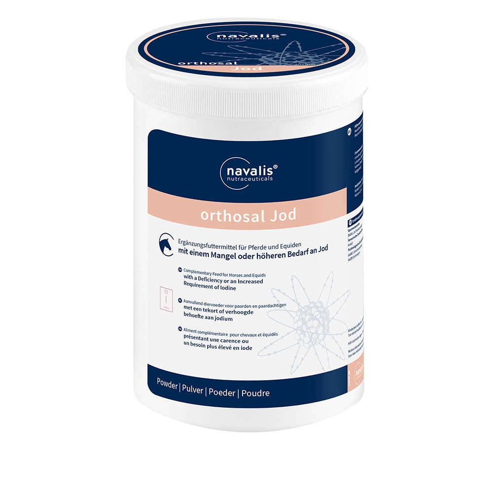 Da Jod maßgeblich an der Regulation von Körperfunktionen wie Kreislauf, Verdauung, Thermoregulation und Fellqualität beteiligt ist, kann ein Mangel zu Leistungseinbußen, Lethargie oder Haut- und Fellproblemen führen. Besonders Jungpferde, tragende und laktierende Stuten sowie ältere Pferde profitieren von einer bedarfsgerechten Versorgung. orthosal Jod enthält hochwertiges, organisch gebundenes Jod aus natürlichem Blasentang und zeichnet sich durch eine hohe Bioverfügbarkeit aus.