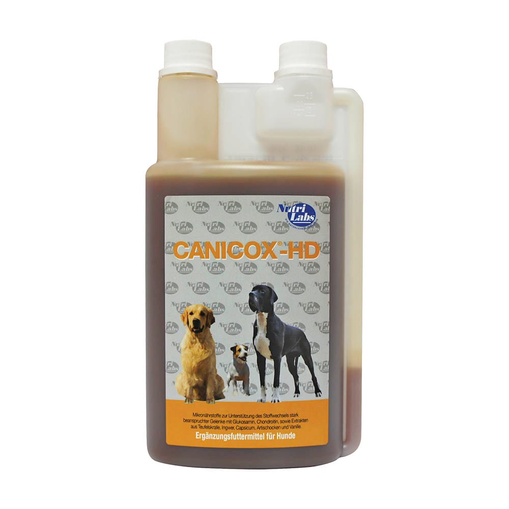 Canicox®-HD ist ein Ergänzungsfuttermittel für Hunde zur Unterstützung des Stoffwechsels besonders stark beanspruchter Gelenke. Das Produkt wurde gezielt für Hunde entwickelt, welche überdurchschnittlichen Belastungen für die Gelenke ausgesetzt sind, z. B. bei extremen sportlichen Leistungen, Verschleißerscheinungen oder genetisch bedingten anatomischen Unterentwicklungen. Enthalten sind GAGs (Glukosamin, Chondroitin, Hyaluronsäure) in der für Hunde optimal verwertbaren Form zur Unterstützung der physiologischen Synthese gut schmierfähiger Gelenksflüssigkeit und der Funktion der Gelenkskapsel.