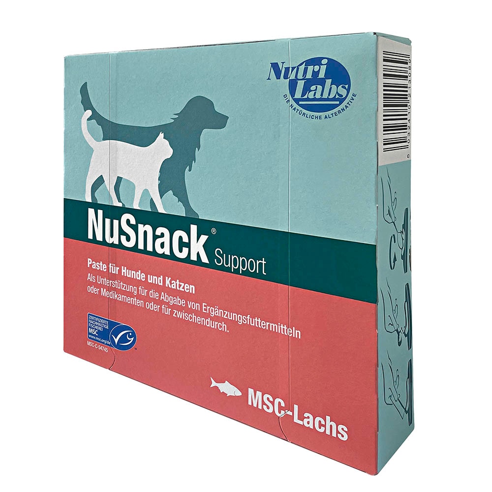 - Ergänzungsfuttermittel für Hunde und Katzen.Mit dem NuSnack® Support wurde ein Produkt herausgebracht, welches nicht wie andereProdukte für eine spezielle Indikation gedacht ist. Der NuSnack® Support ist eine Paste mit intensivem Lachsgeschmack für Hunde und Katzen, die perfekt als Abgabehilfe für Medikamente oder Ergänzungsfutter in Form von Pulver oder Tabletten verwendet werden kann. Dazu mischt man einfach das Pulver, oder die zerkleinerte Tablette unter die Paste. Zusätzlich kann die Paste, wie der Name schon sagt, dem Tier auch einfach so zwischendurch als Snack gegeben werden.