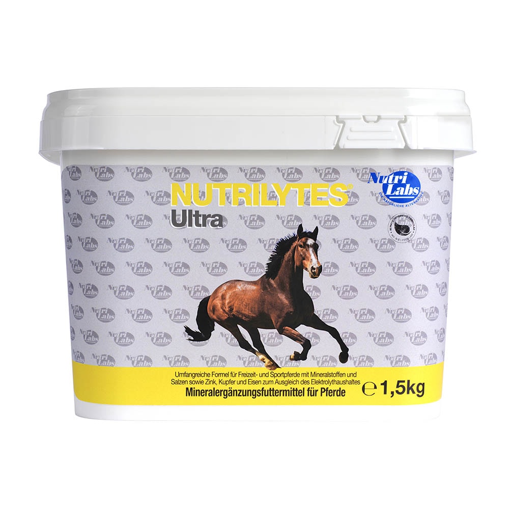 Nutrilytes® Ultra Pellets wurden für Freizeit- und Sportpferde entwickelt, die einen erhöhten Bedarf an Elektrolyten haben. Eine Kombination aus den notwendigen Salzen sowie Zink, Kupfer und Eisen unterstützt das Pferd bei einem Flüssigkeitsverlust durch starkes Schwitzen dabei, den erhöhten Bedarf an diesen Stoffen zu decken und den Elektrolythaushalt im Gleichgewicht zu halten.