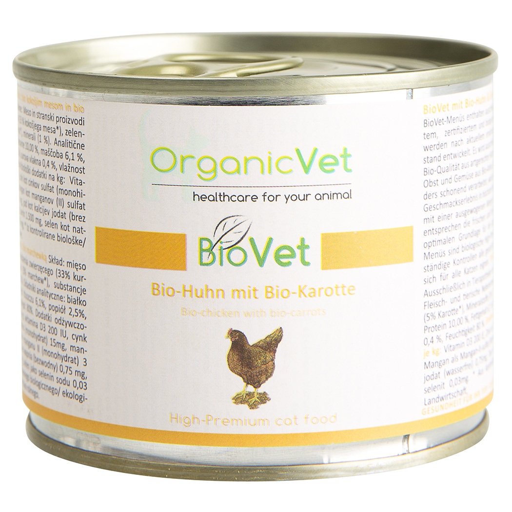 Im Einklang mit einer ausgewogenen Menge an Vitaminen und Mineralien entsprechen die frischen und hochwertigen Bestandteile einer optimalen Grundlage für die artgerechte Ernährung. BioVet-Menüs sind biologische High-Premium Produkte, welche durch ständige Kontrollen alle gesetzlichen Vorschriften erfüllen und sich für alle Katzen eignen.