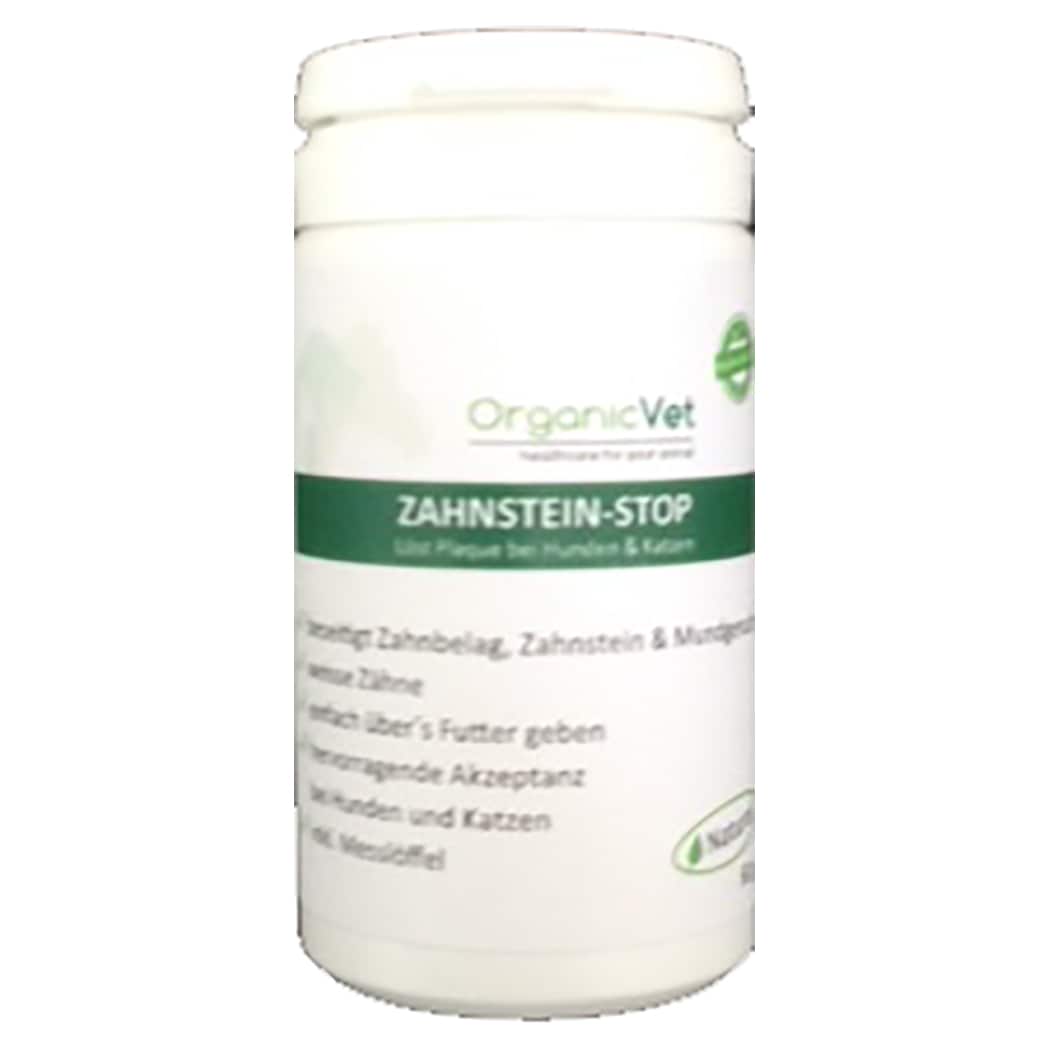 OrganicVet Zahnstein-Stop ist ein Ergänzungsfuttermittel für Hunde und Katzen.