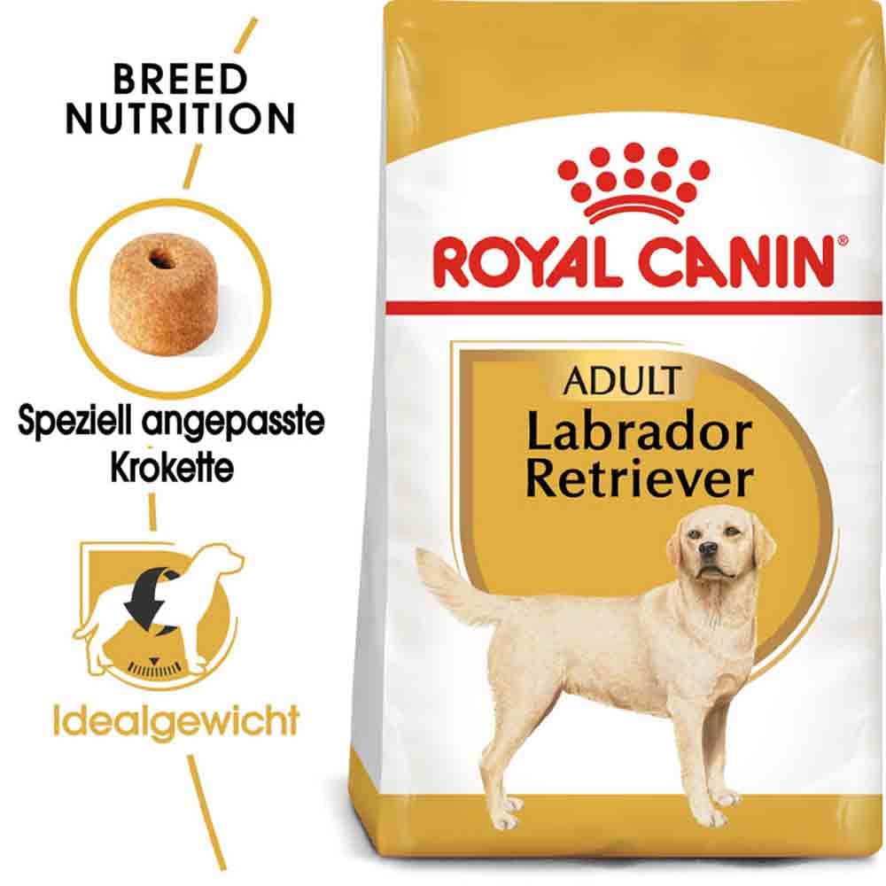 ROYAL CANIN Labrador Retriever Adult ist für Labrador Hunde ab dem 15. Lebensmonat geeignet und wurde speziell auf die Bedürfnisse dieser Rasse abgestimmt. Diese Rassenahrung hat einen speziell angepassten Energiegehalt, der Ihrem “Labbi” dabei hilft, sein Idealgewicht zu halten. Die enthaltene Faserkombination sorgt für ein langanhaltendes Sättigungsgefühl und unterstützt eine gesunde und regelmäßige Verdauung. Die Kroketten des Trockenfutters zeichnen sich durch eine spezielle Form aus, die zum Kauen anregt und dadurch einem allzu hastigen Schlingen vorbeugt.