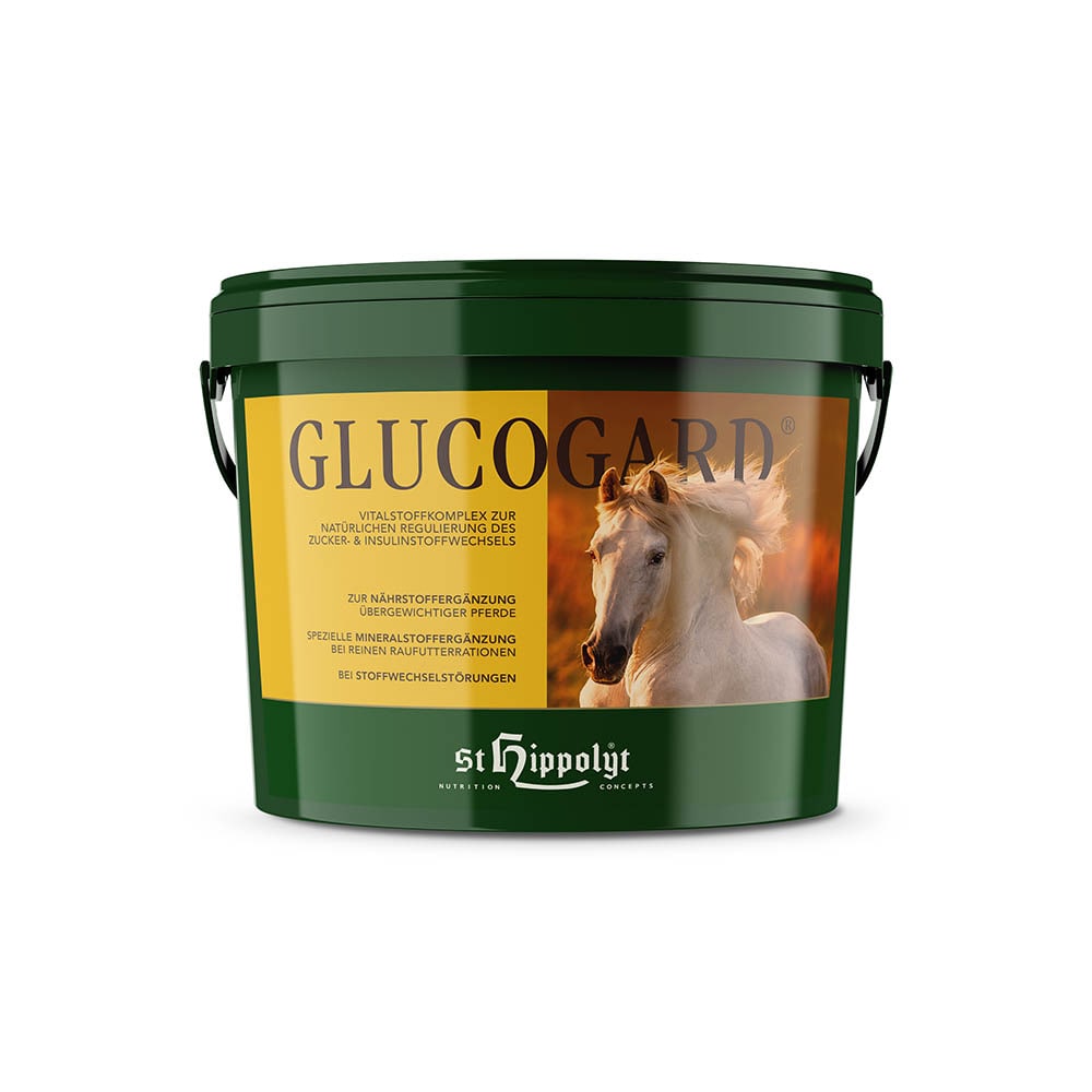 Für Pferde mit Übergewicht und Stoffwechselentgleisungen ist eine getreide- und damit stärke- und zuckerarme Ernährung erforderlich. Wird hierbei jedoch auf eine reine Heu- und Strohfütterung gesetzt, kann der Bedarf an spezifisch benötigten Mineralstoffen und Funktionsnährstoffen nicht hinreichend gedeckt werden.Glucogard® liefert neben einem ausgewogenen Spektrum an Mikronährstoffen auch Antioxidantien und pflanzliche Schutznährstoffe, die derartigen Mangelsituationen entgegenwirken.