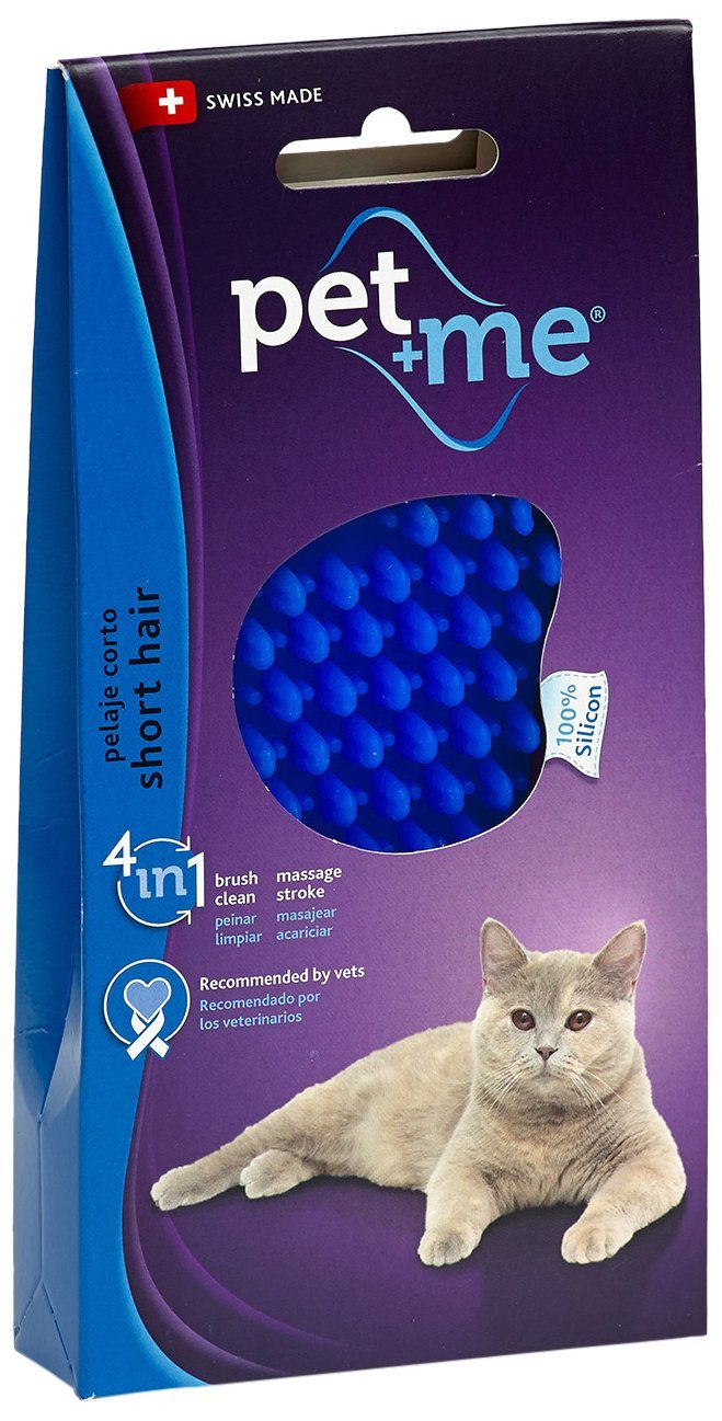 - Die feine Seite von pet+me® kann sowohl trocken wie auch feucht angewendet werden, um abgestorbene Hautteile und lose Haare zu entfernen. Diese Seite eignet sich auch, um Haare von Möbeln, Autositzen, Teppichen und Kleidern zu entfernen. Übt man ein wenig Druck aus, können sogar die kürzesten Haare aus Stoffen entfernt werden. Das Silikonmaterial zieht sogar Staub und Allergene an, die sonst durch die Luft fliegen. Regelmässiges Bürsten, zweimal die Woche, kann also helfen, Allergien einfach wegzubürsten (elektrostatische Ladung).