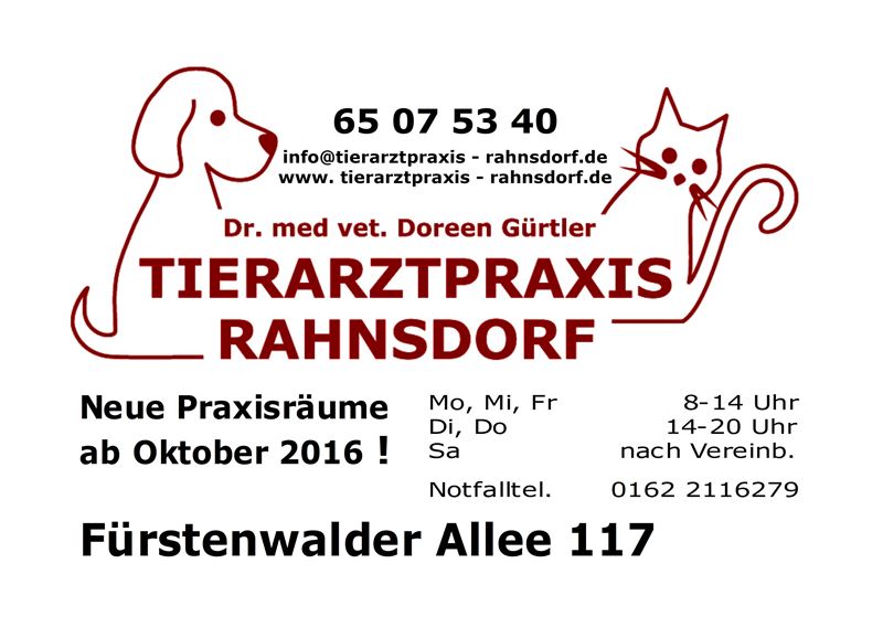 Hunde, Katzen, Nager, Reptilien, Vögel Außererhalb der angegebenen Öffnungszeiten sind Termine nach Vereinbarung möglich.