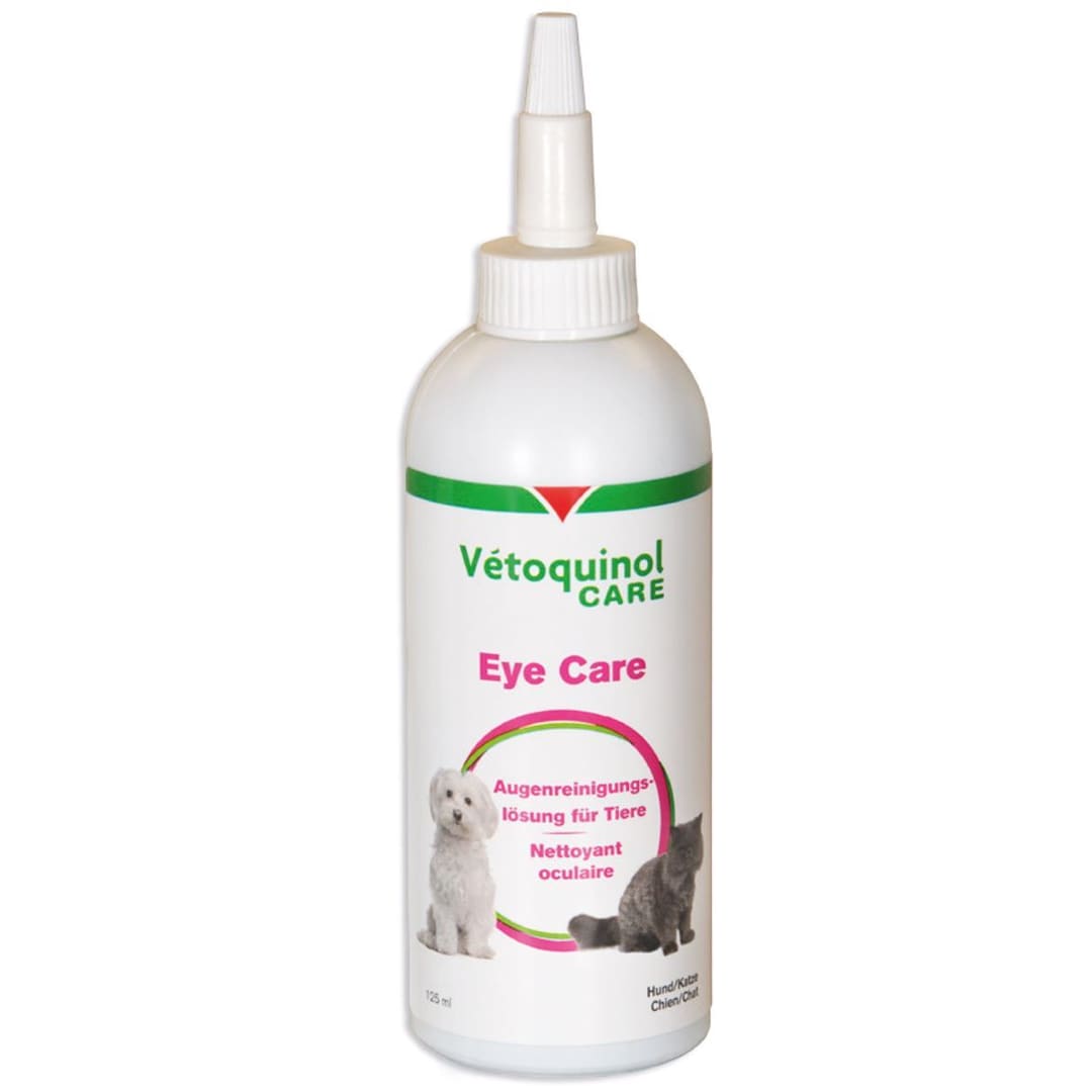 Eyecare Augenreinigungslösung ist eine physiologische Lösung für die regelmäßige Reinigung der Augenumgebung bei Hunden, Katzen, Pferden, Vögeln, Reptilien, Kaninchen, Frettchen und Nagetieren. Extrakt von Kamille, Ringelblume und Augentrost hat einen wohltuenden und reinigenden Effekt. Regelmäßige Verwendung von Eyecare Augenreinigungslösung kann Verfärbungen durch tränende Augen minimieren.Zusammensetzung