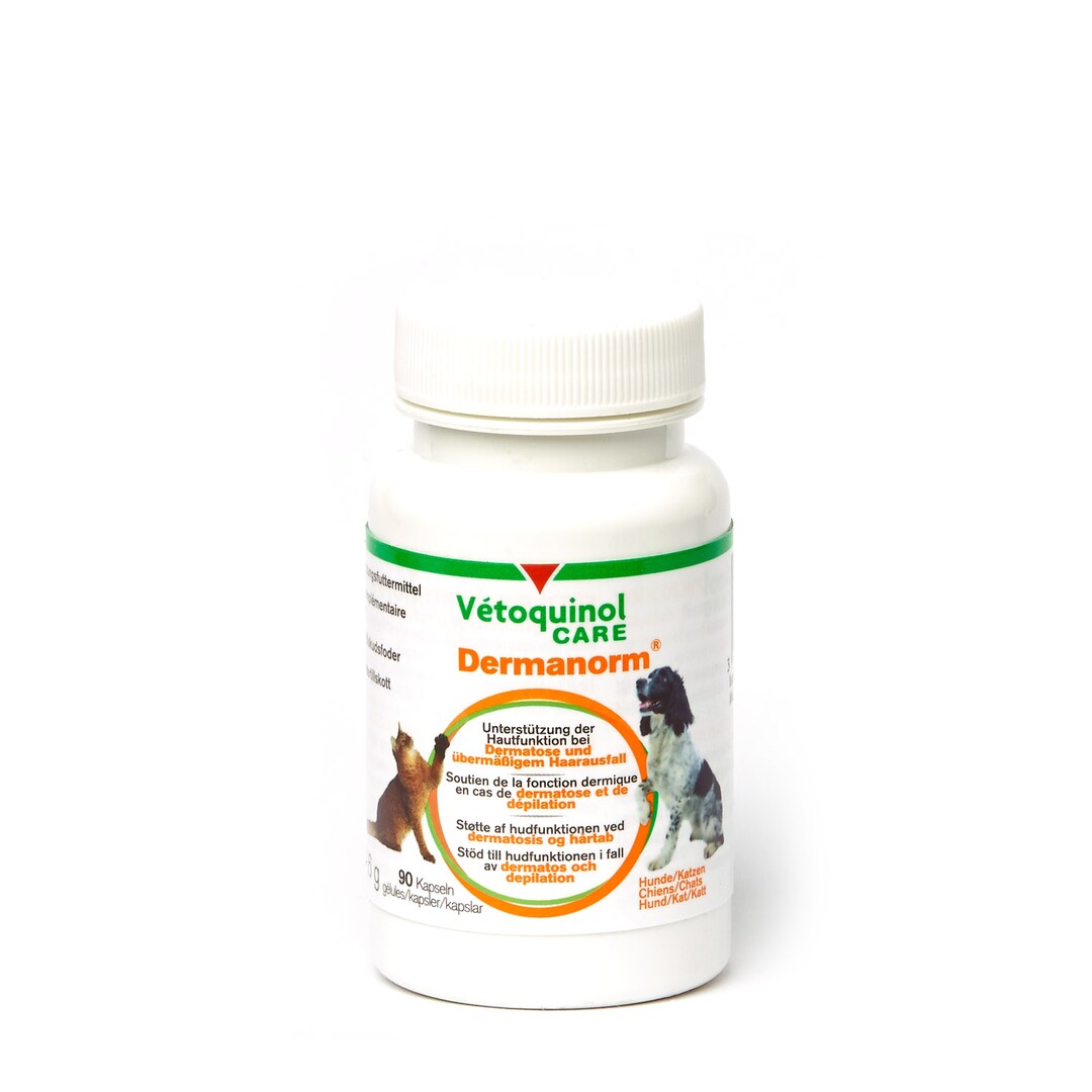 Dermanorm ist ein Diät-Ergänzungsfuttermittel für Hunde und Katzen zur Unterstützung der Hautfunktion bei Dermatose und übermäßigem Haarausfall.