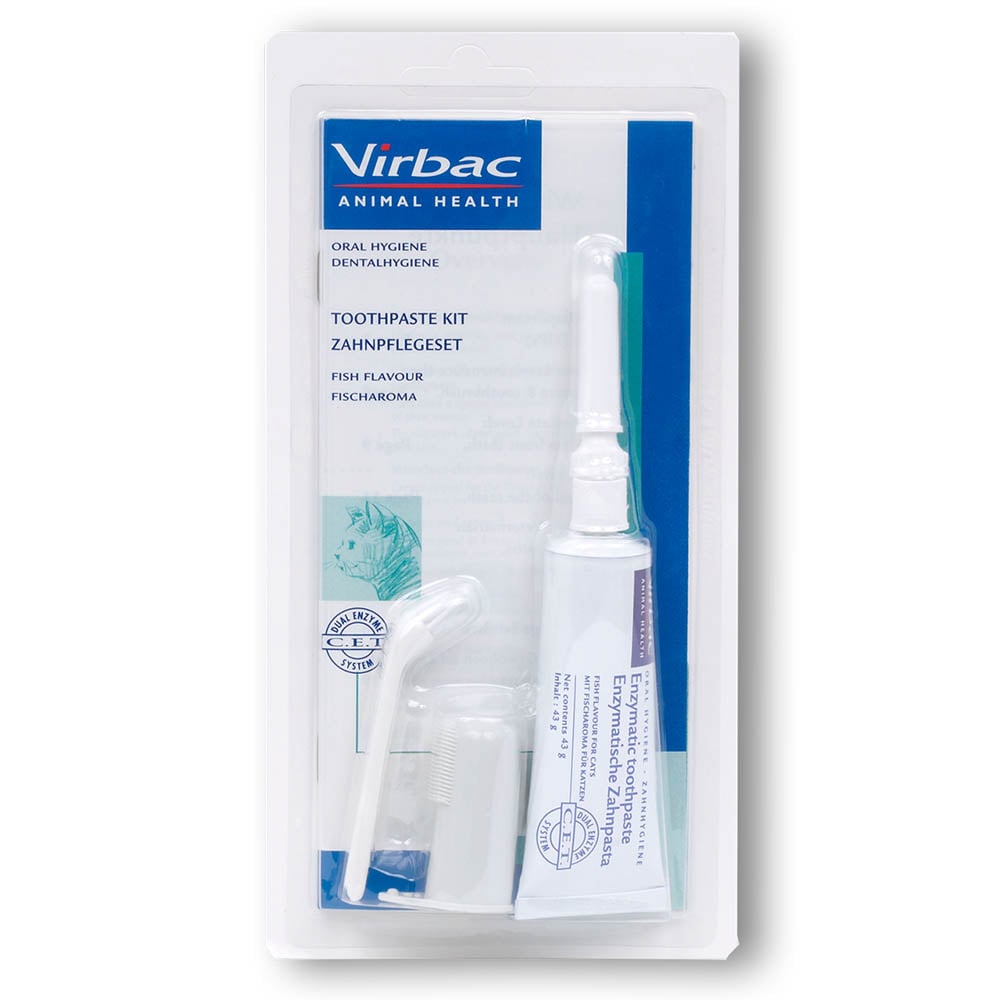 Die C.E.T. Zahnpasta von Virbac wurde speziell für Katzen entwickelt. Das in ihr enthaltene Reinigungssystem verbessert die Maulhygiene. Die geschmackliche Akzeptanz ist durch das Fischaroma hervorragend. Ein anschließendes Ausspülen der Zahnpastareste ist nicht erforderlich. Das regelmäßige Bürsten mit der C.E.T. Zahnpasta vermindert Zahnbelag (Plaque), beugt damit der Bildung von Gingivitis und Zahnstein vor und bewirkt einen frischen Atem. Die Anwendung erfolgt in Kombination mit einer für Katzen geeigneten Zahnbürste. Eine solche Zahnbürste ist im Zahnpflegeset enthalten. Zur Gewöhnung des Tieres an den Putzvorgang ist zusätzlich eine Fingerzahnbürste vorhanden. Die beigefügte Broschüre führt den Tierhalter in die Praxis des Zähneputzens bei der Katze ein und hebt die Bedeutung der regelmäßigen Zahnkontrolle beim Tierarzt hervor.