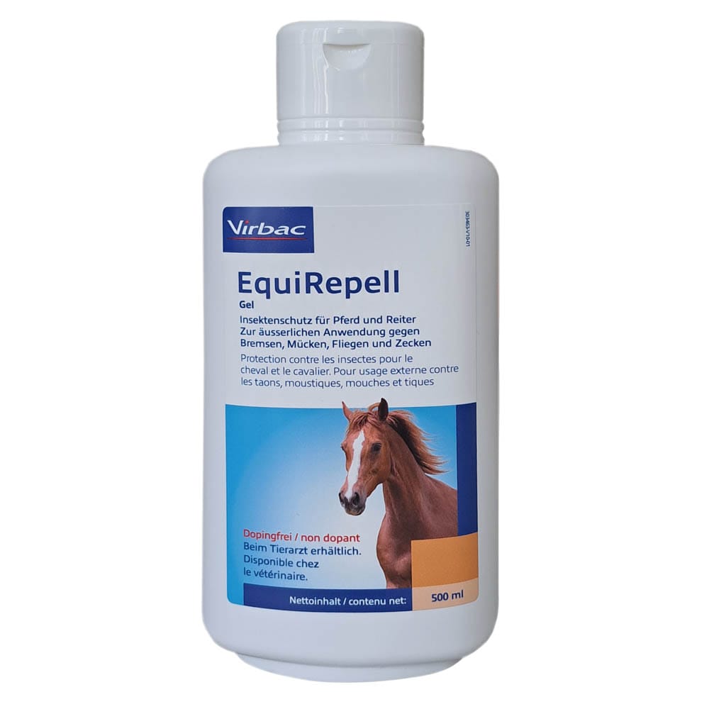 EquiRepell Gel zur äußerlichen Anwendung gegen Bremsen, Mücken, Fliegen und Zecken. Die schützende Wirkung tritt sofort ein. Die Schutzdauer kann bis zu 24 Stunden betragen; gegen Zecken bis zu 4 Stunden. Die Schutzwirkung tritt sofort ein. EquiRepell ist dopingfrei.